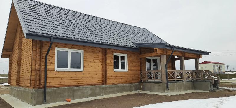 Комплектация: сруб, стропильная система, лаги, балки, обрешетка, доска пола, плинтус, террасная доска, подшива потолка