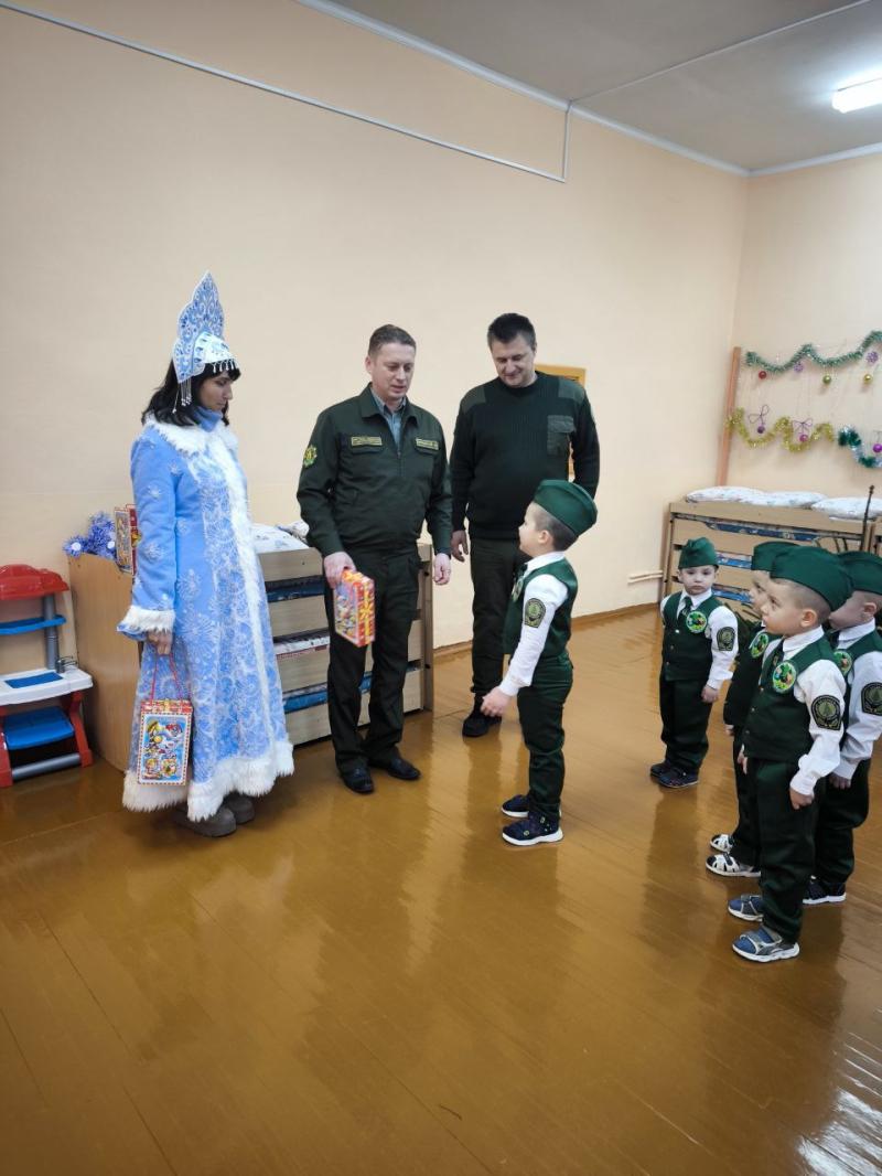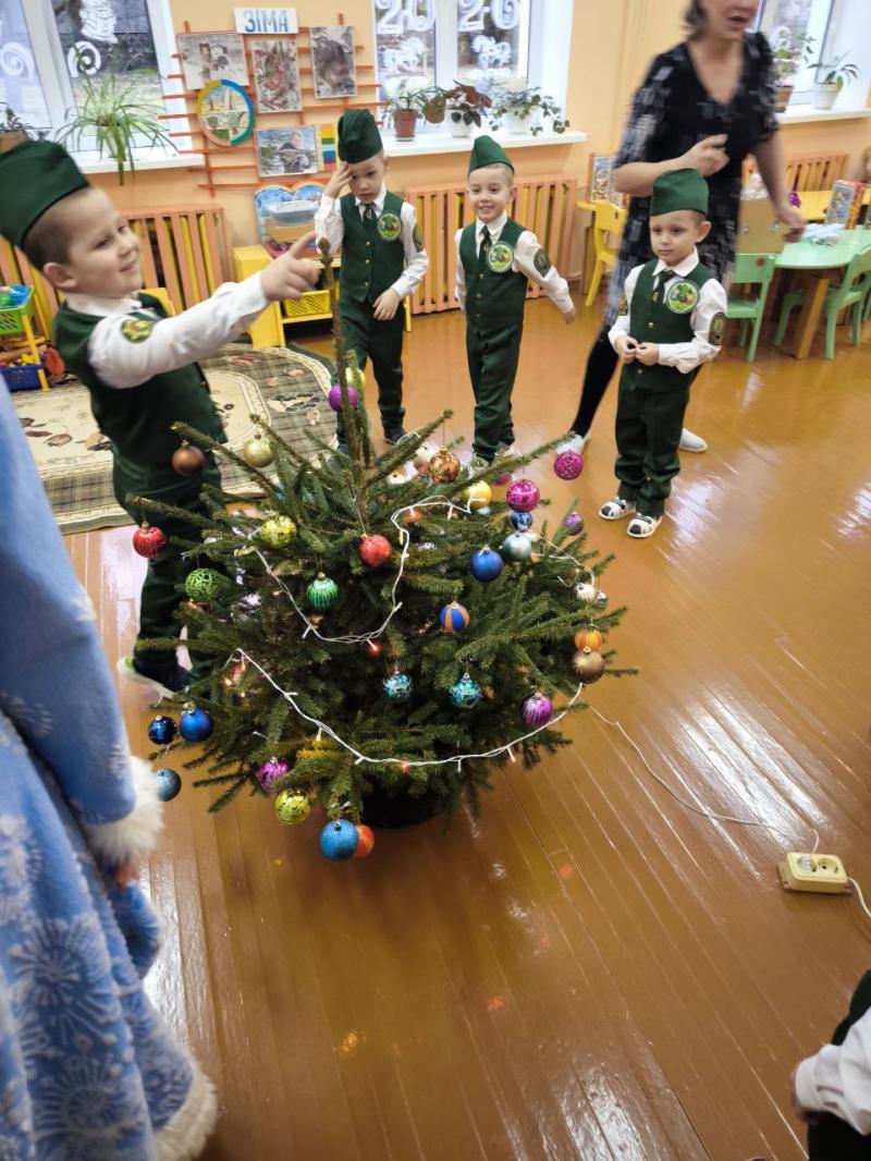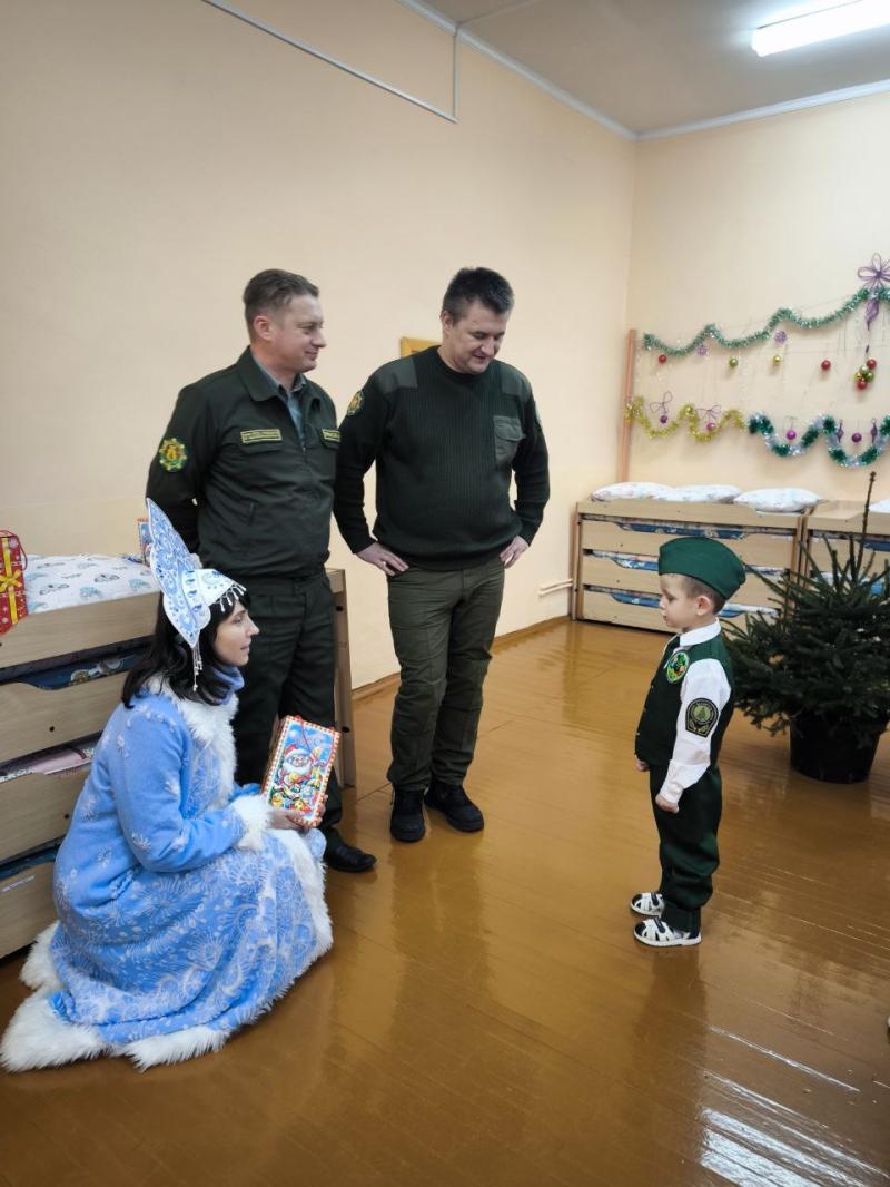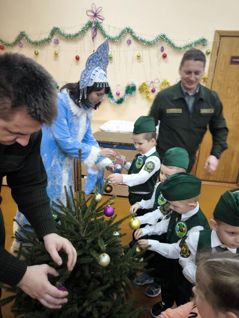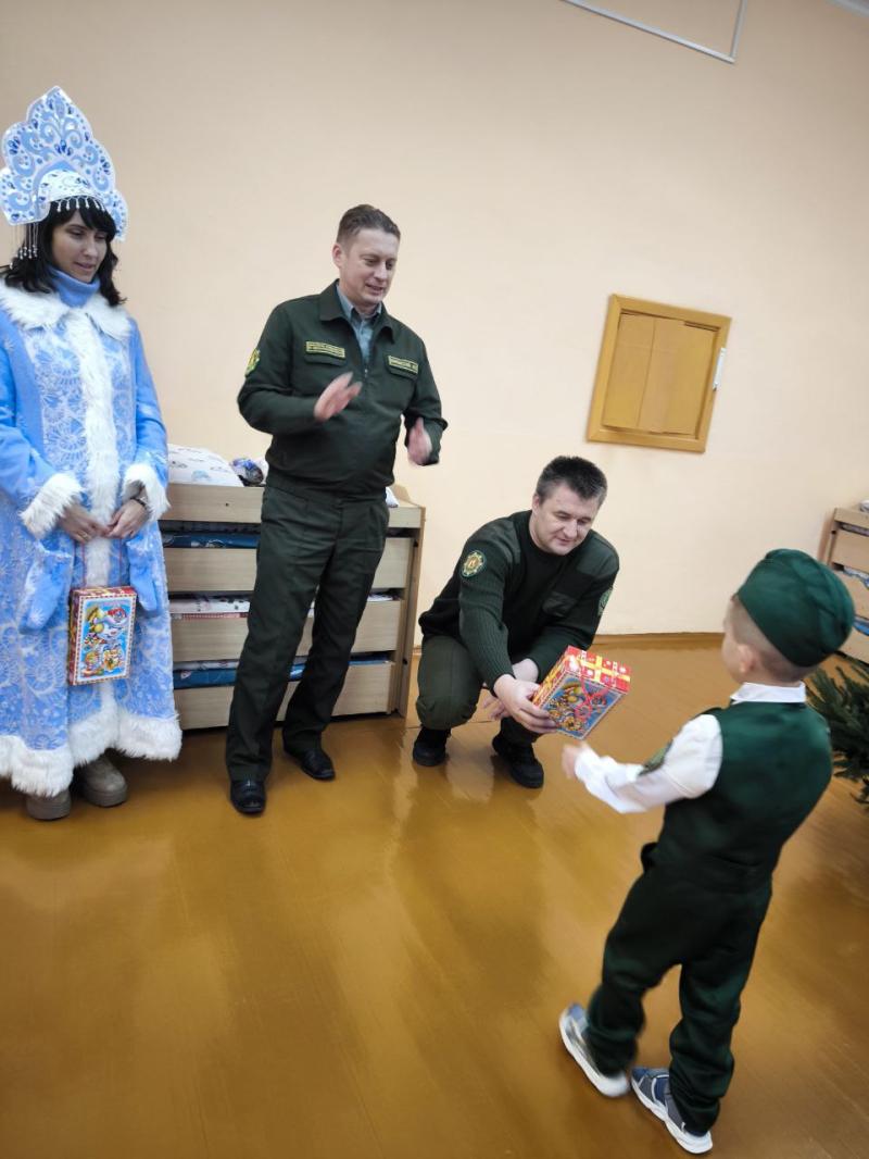 Главный лесничий Новогрудского лесхоза Дмитрий Крыжевич, заместитель руководителя по идеологической работе Александр Гарнастай и председатель профкома Татьяна Новогран (по совместительству Снегурочка) вручили «лесовичкам» сладкие подарки и главный символ праздника - новогоднюю ёлочку, которую вместе и украсили!