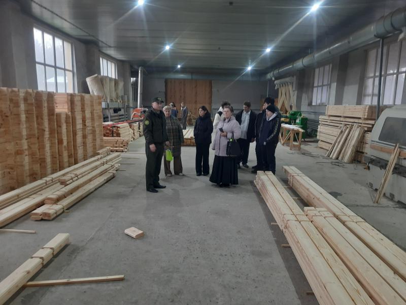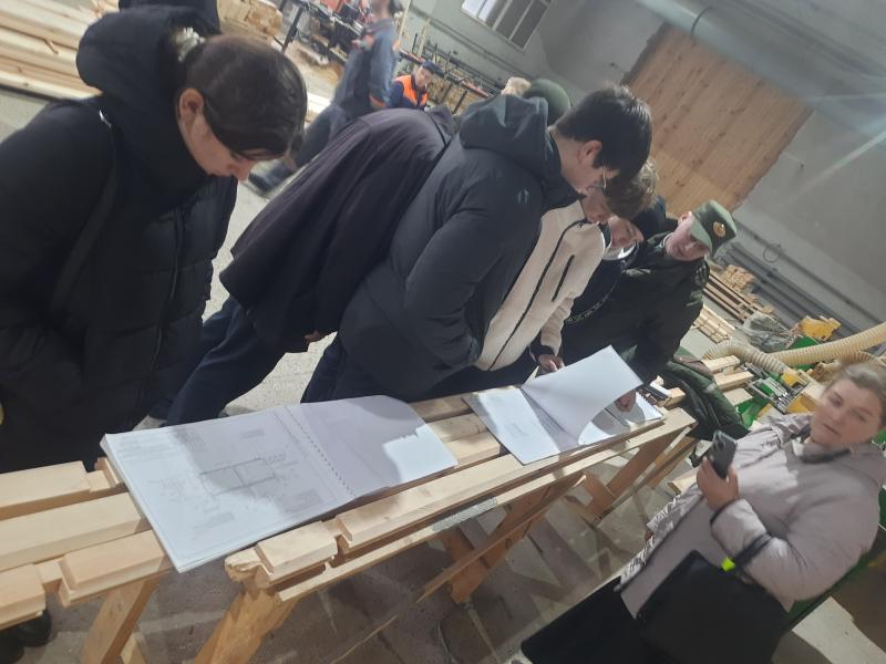 Затем юные гости отправилась в цех по производству домов, где им продемонстрировали этапы домостроения, начиная от подготовки сырья и заканчивая сборкой готовых конструкций.