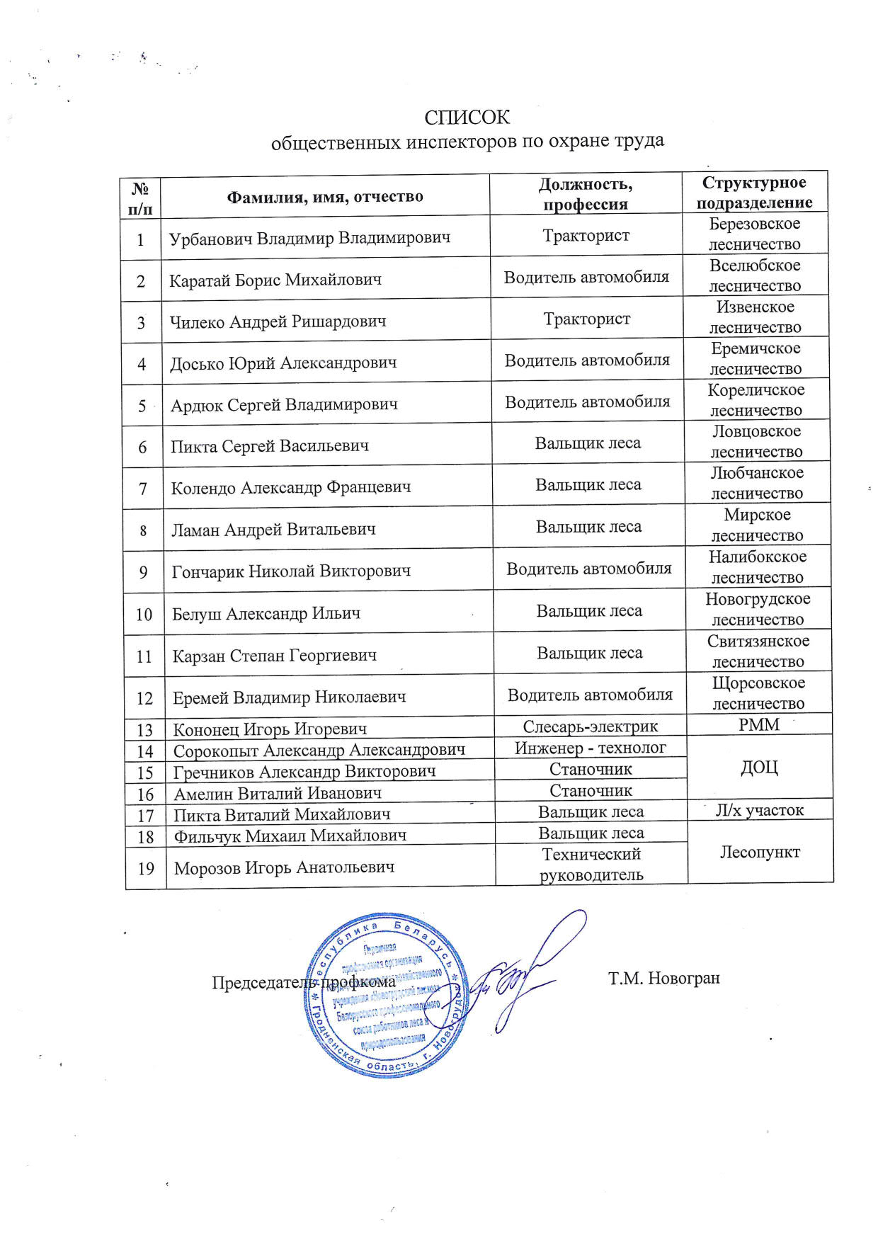СОСТАВ ПРОФСОЮЗНОГО КОМИТЕТА